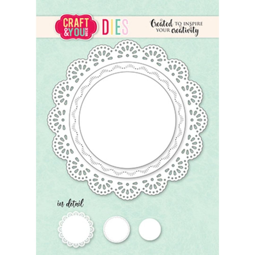 Inneholder 3 dies som stanser ut en dekorativ doily og to mindre sirkler. Kan brukes sammen eller hver for seg.