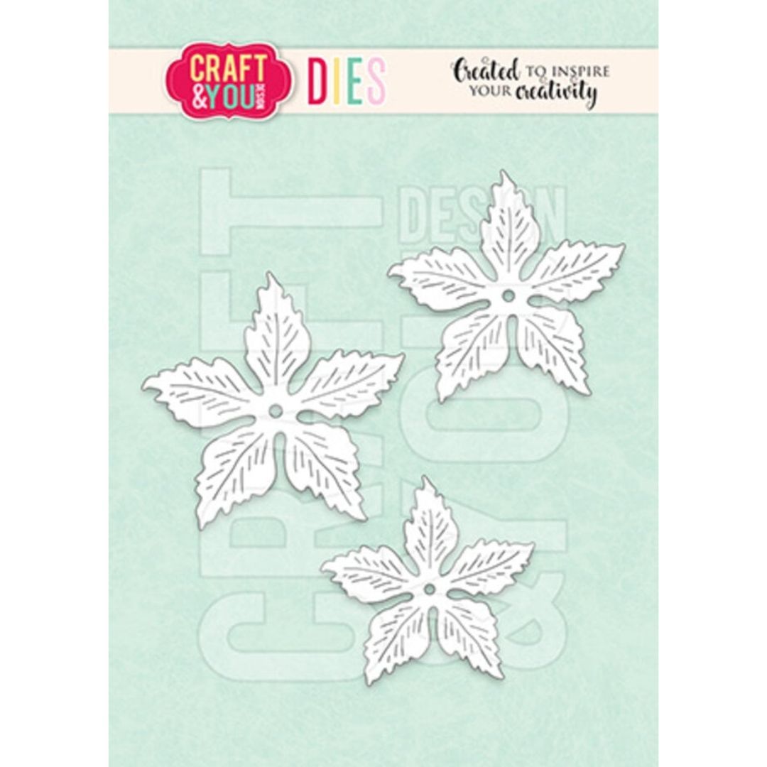Craft & You Design Dies. Created to inspire your creativity. Magda’s Poinsettia Small Flower Dies. Set of three cutting dies. Approximate diameter: 1/ 5,5 cm; 2/ 4,7 cm; 3/ 4,4 cm.