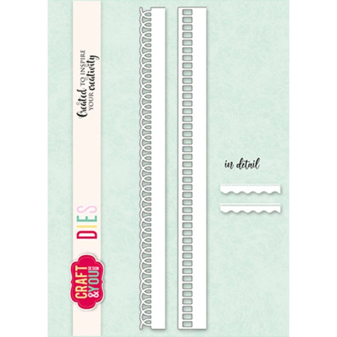 Doily Borders Dies. Set of 2 cutting dies. Approximately dimensions: 1/ 14,5 x 0,9 cm; 2/ 14,5 cm x 0,7 cm.