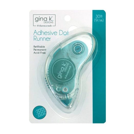 Gina K. Designs for Therm O Web’s Adhesive Dot Runner. 30 Feet of tape, refillable, and acid free. Great for use on cards, layouts, mixed media and more. Photo Safe.