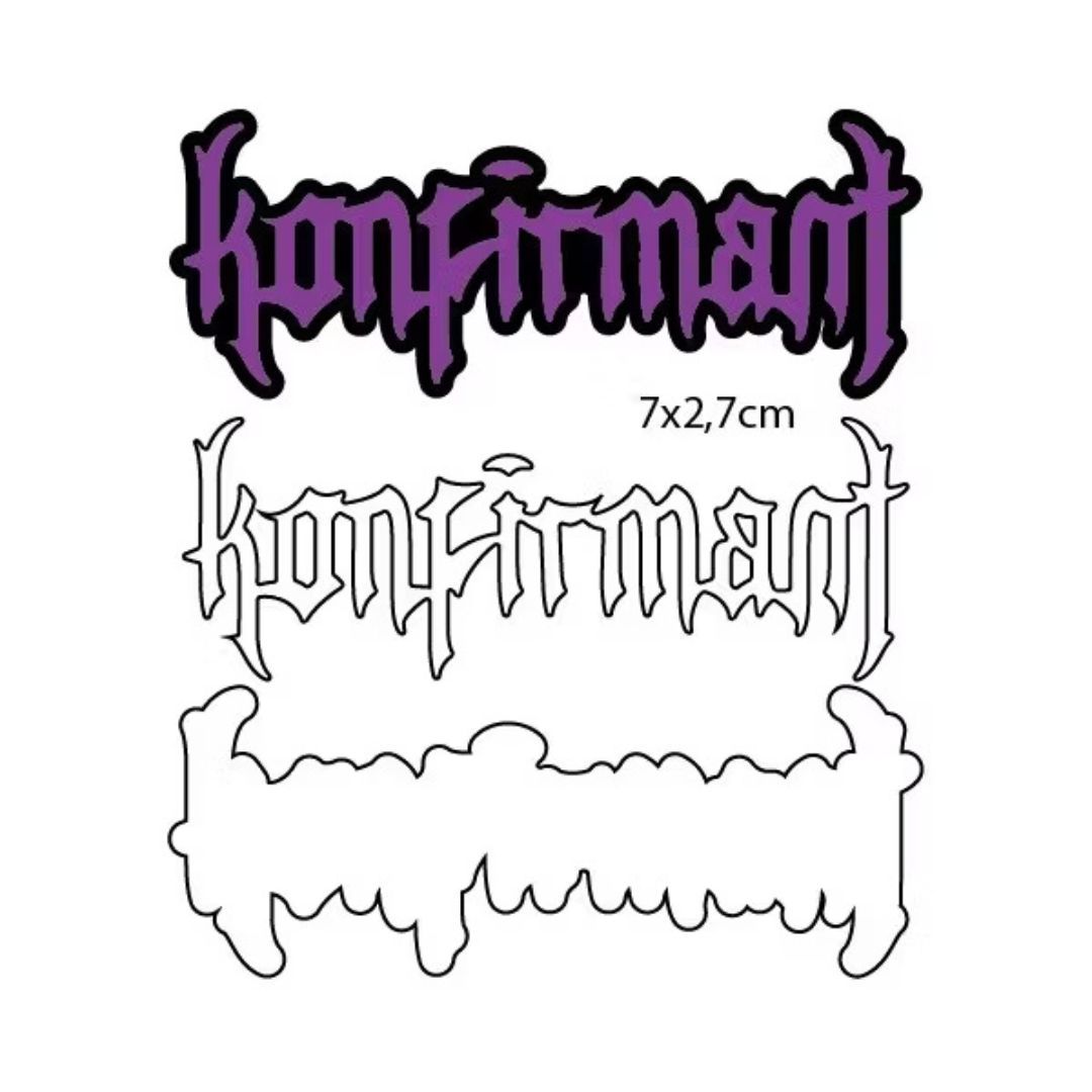 Inneholder 2 dies som stanser ut teksten ‘konfirmant’ og en tilhørende skygge.