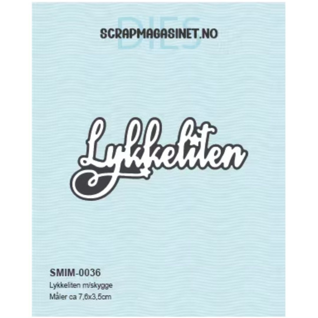 Inneholder 2 dies som stanser ut teksten ‘Lykkeliten’ og en tilhørende skygge.