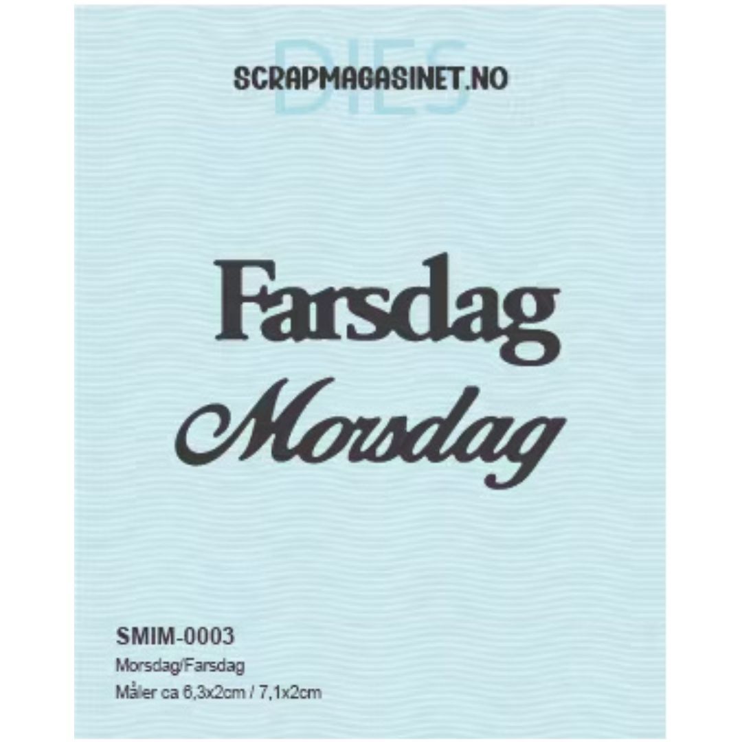 Inneholder 2 dies som stanser ut tekstene ‘Morsdag’ og ‘Farsdag’.